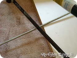 - Use the nail to make a small indentation to stop the drill bit from slipping on the shiny wood and then drill your holes. You will drill each end of the longer pieces only as this is where the thread bar will feed though.